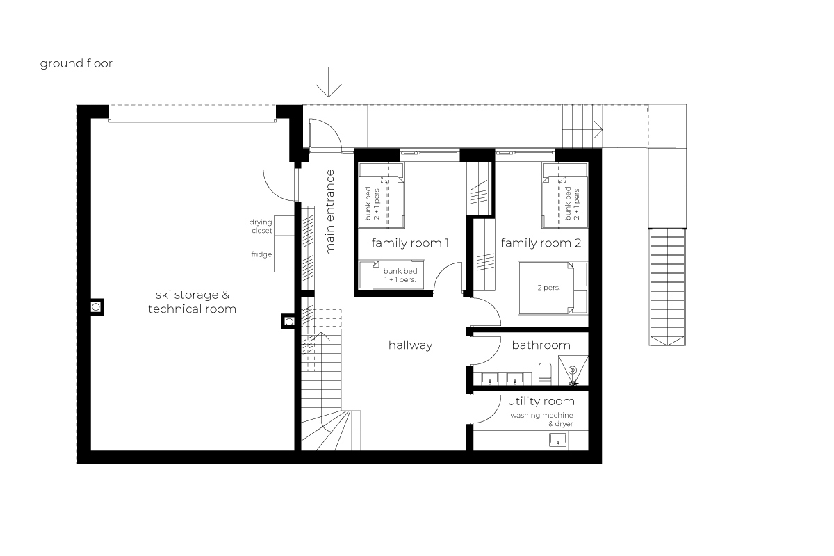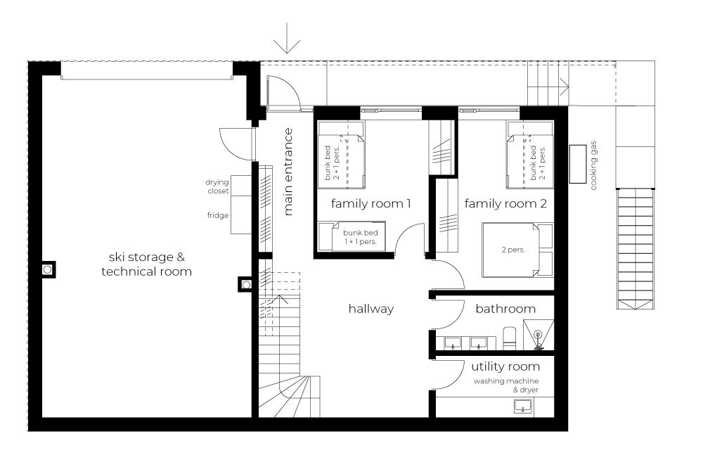 The modern chalet offers everything you need — from cozy, private bedrooms and spacious shared living areas to a fully equipped kitchen, a large sauna, and a dedicated ski room.